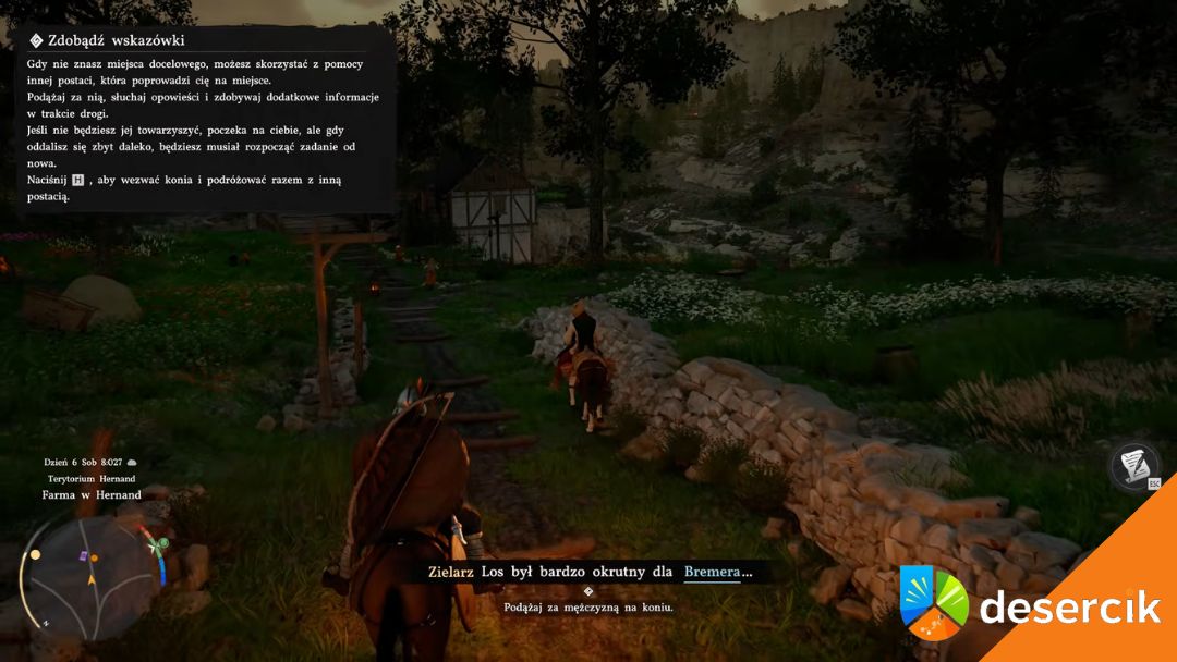 - Trzymaj :x: / :a: aby podążać za zielarzem, który prowadzi cię do miejsca zaginionej krowy.