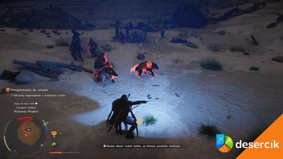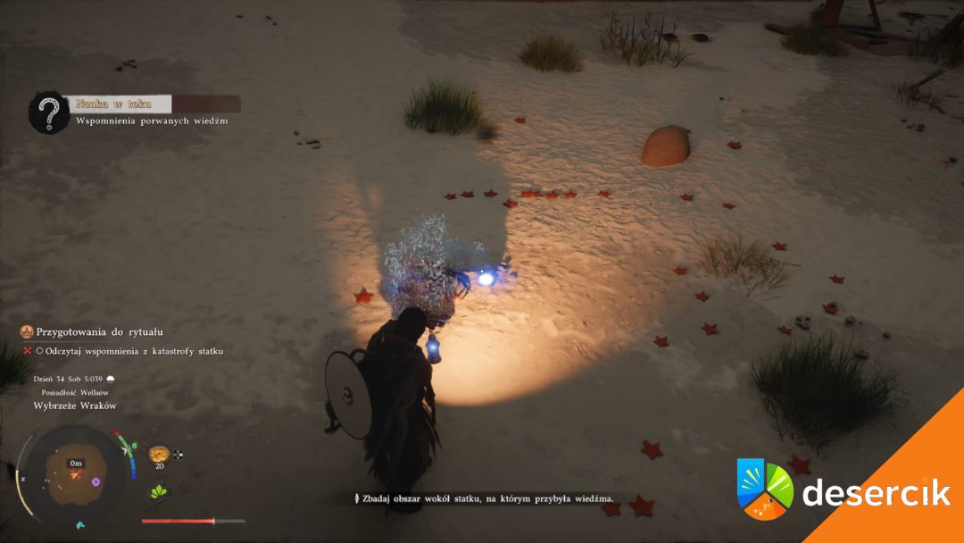 Na brzegu, gdzie rozbił się statek, znajdujesz jego wrak. Wszystko wskazuje na to, że to właśnie nim podróżowały zagraniczne siostry. Twoim zadaniem jest dokładne zbadanie miejsca katastrofy i odnalezienie przedmiotów potrzebnych do dalszego rytuału.