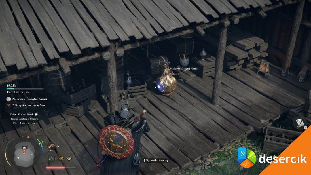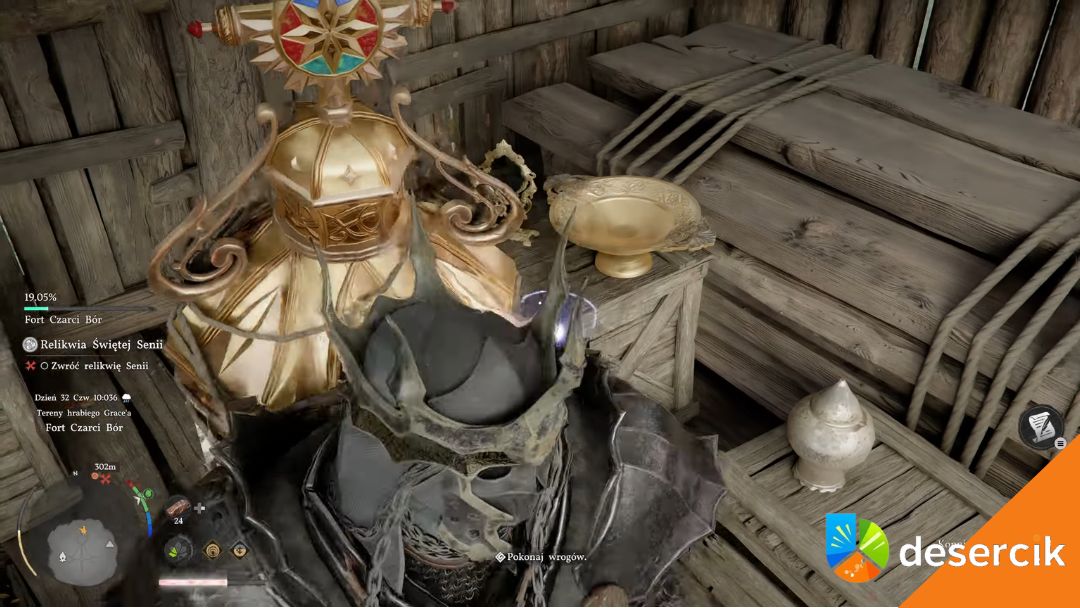 Najważniejszym elementem jest odnalezienie samego przedmiotu. Relikwia ma formę złotego naczynia, które wyraźnie wyróżnia się na tle otoczenia. Znajdziesz ją za głównym namiotem w obozie, lekko odsuniętą na bok.