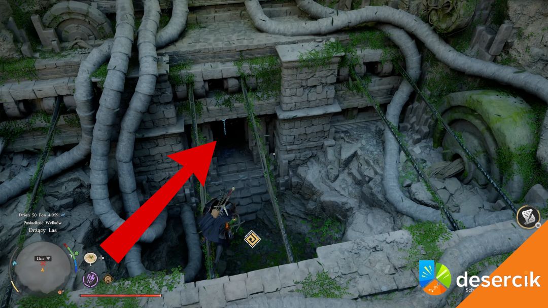 Kiedy wszystkie trzy warstwy będą ustawione poprawnie, zobaczysz krótką animację – woda przed tobą opadnie, odsłaniając drzwi na dolnym poziomie. Zejdź na dół, aktywuj Kamień Otchłani i odblokuj stację szybkiej podróży.