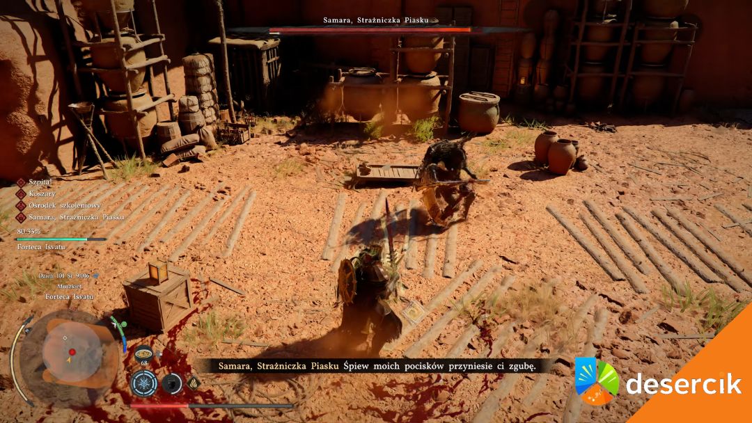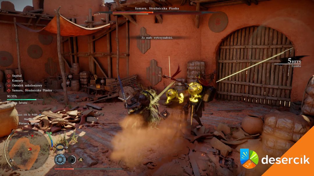 Problemem nie są tylko obrażenia, ale tempo. Nie masz kiedy się leczyć ani spokojnie reagować, jeśli próbujesz grać na jej zasadach. Wielu graczy skupia się tylko na samej Samarze, a pomija otoczenie. To błąd. Walczysz na pustyni, gdzie temperatura realnie wpływa na rozgrywkę. Jeśli nie masz odpowiedniego wyposażenia, twoja stamina zaczyna znikać szybciej niż powinna. A bez staminy nie ma uników. Bez uników – walka kończy się bardzo szybko.