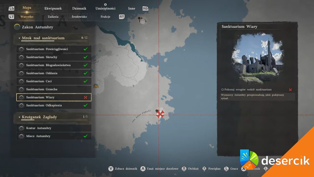 Sanktuarium Wiary znajdziesz w Szarym Lesie w regionie Delesyia, czyli w południowo-wschodniej części mapy. Jak w przypadku innych takich miejsc, wszystko zaczyna się od walki, ale później wchodzi już typowa zagadka z wykorzystaniem mechanik środowiska.