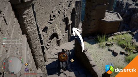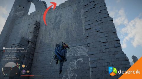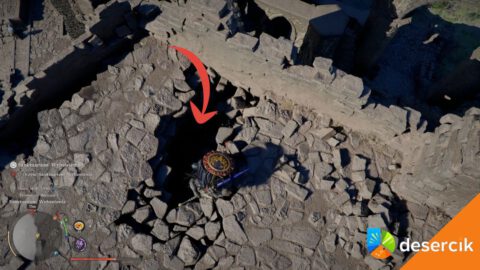 Po walce natrafisz zejdź schodami w dół w odpowiednim momencie skręcająca w lewo do ciemnego pomieszczenia. Idź do końca i sprawdź każdy kąt, czeka tam na Ciebie skrzynia ze skarbami. Podejdź do wyjścia i popatrz w górę, zobaczysz tam brakujący element filaru. Złap go Mocą Aksjomatu i schowaj do Kotła Kuku.