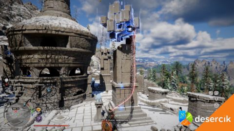 I tu zaczyna się kombinowanie. Na początku trafisz na obszar z wodą, który blokuje dostęp. Musisz zniszczyć skrystalizowaną wodę, żeby poziom opadł. Dopiero wtedy pojawi się dostęp do pierwszego rdzenia. Gdy woda zniknie, używasz Mocy Aksjomatu, żeby złapać rdzeń i wrzucić go do Kotła Kuku. To ważne, bo bez tego nie przeniesiesz go dalej.