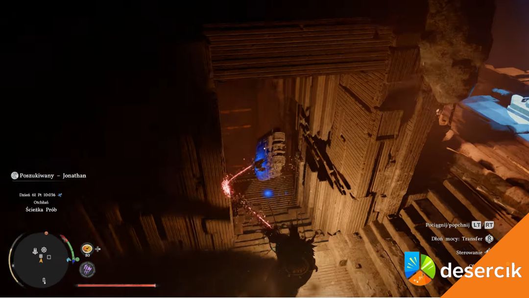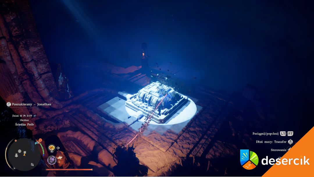 W tej lokacji dochodzi jeszcze jeden element – niska temperatura. Jeśli postać zbyt mocno zmarznie, nie będziesz w stanie używać umiejętności potrzebnych do przejścia dalej. Dlatego warto mieć odporność na zimno (najlepiej poziom 5+) i korzystać z lamp po drodze, żeby się ogrzać. Bez tego możesz się zablokować w połowie zagadki.