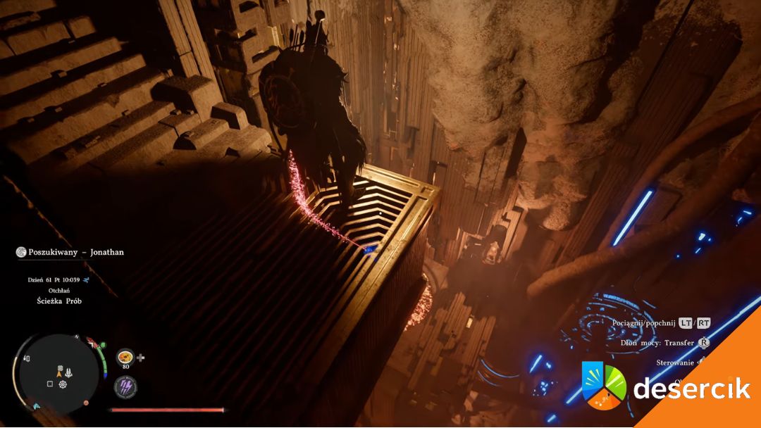 Na końcu trafiasz na ruchome platformy. Najłatwiej poczekać, aż ustawią się w jednej linii i po prostu przebiec. Jeśli nie chcesz czekać, możesz używać Mocy Aksjomatu, żeby przeskakiwać między nimi. Na końcu aktywujesz Splot Otchłani.