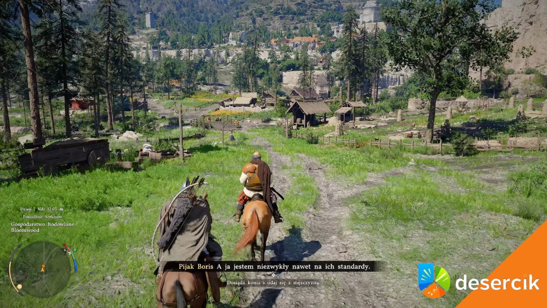 Boris wsiądzie na konia i odjedzie. Przywołaj swojego wierzchowca i podążaj za nim w bezpiecznej odległości. Nie próbuj go wyprzedzać ani blokować – wystarczy jechać jego śladem.