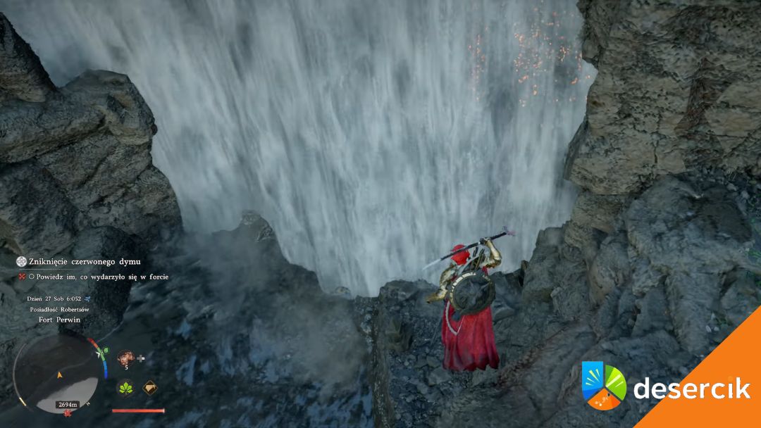 W niektórych miejscach w Crimson Desert wodospady ukrywają sekretne przejścia prowadzące do jaskiń lub skrzyń z nagrodami. Gdy staniesz tuż przy spadającej wodzie, użyj R1 + Trójkąt, aby aktywować umiejętność Dźgnij i przebić się przez strumień do ukrytej lokacji.