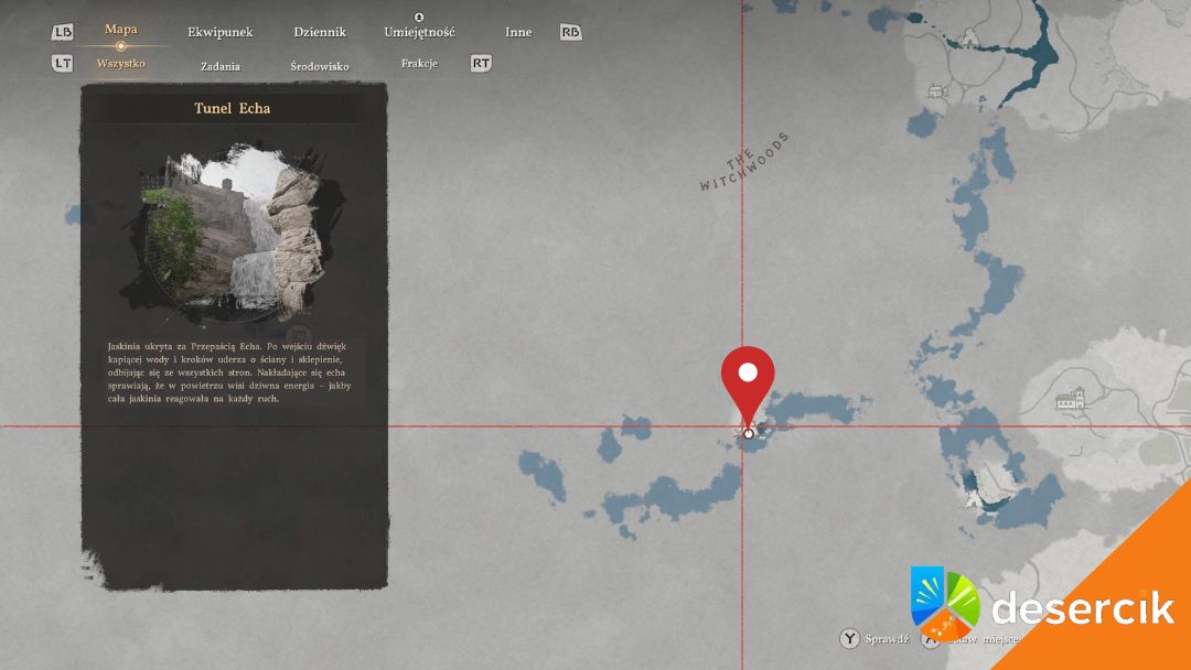 Za Przepaścią Echa w Forcie Perwin znajduje się jeden z bardziej klimatycznych sekretów w okolicy – wodospad prowadzący do Tunelu Echa. Z daleka wygląda jak zwykła ściana wody w Crimson Desert, spływająca po stromym klifie, dlatego łatwo go przeoczyć podczas eksploracji.
