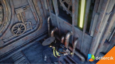 Na początku wracasz w okolice, gdzie zakończyła się poprzednia misja. Kieruj się na wyższy poziom terenu, gdzie znajdziesz krasnoluda stojącego przed niebieskim robotem.