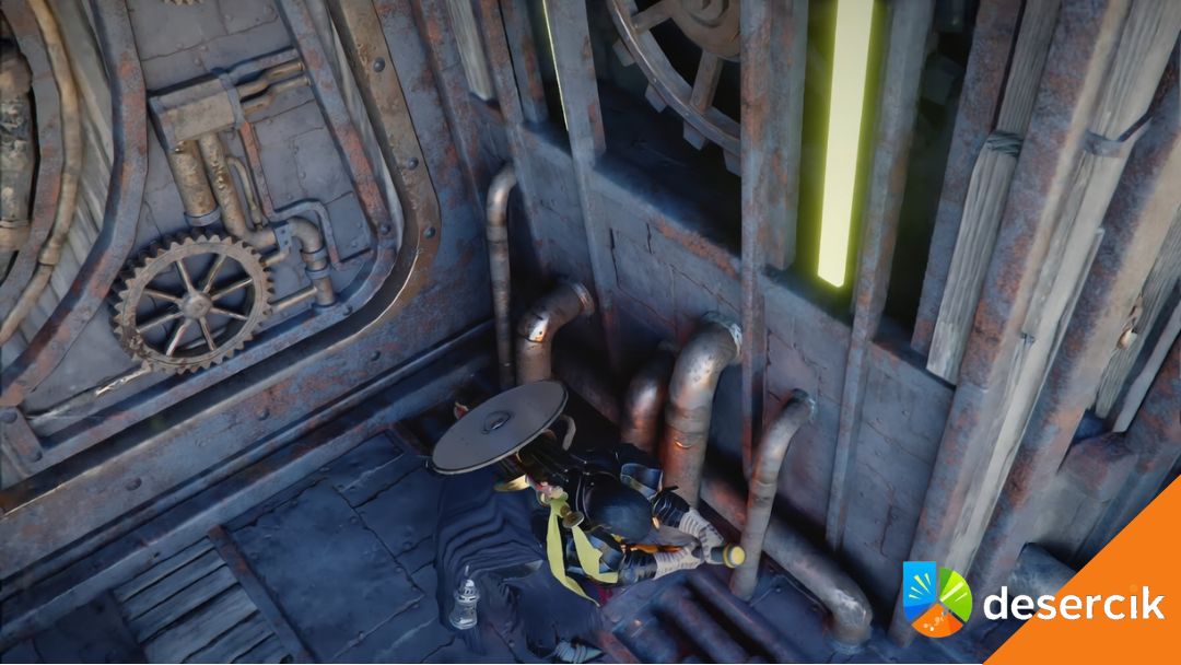 Po cutscence pojawi się orkowy rzemieślnik. Podążaj za nim – to krótki, spokojny fragment, który rozwija fabułę i pokazuje, jak ważna jest ta maszyna dla dalszych wydarzeń.