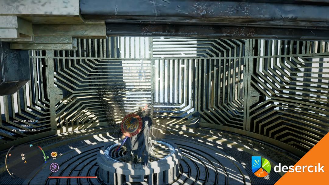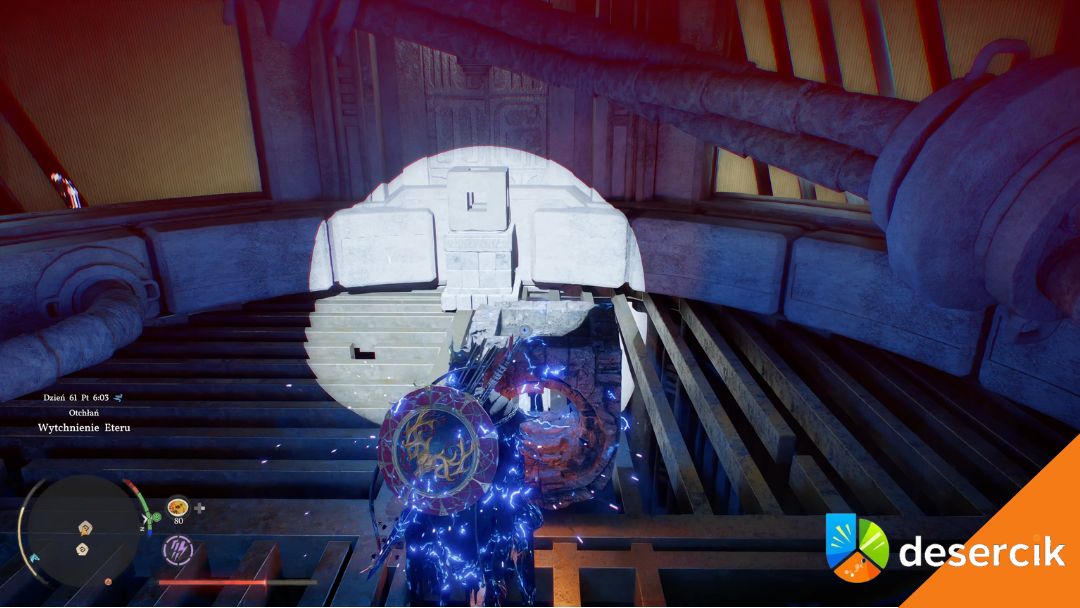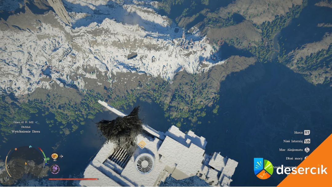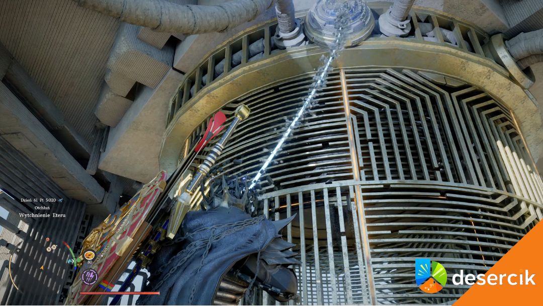 Na końcu kierujesz się na wschód, wspinasz się przez okno i używasz lotu, żeby dostać się do dużego, okrągłego mechanizmu. Tam aktywujesz funkcję Odeprzyj, a następnie używasz Dłoni Mocy, żeby uruchomić urządzenie. Po tym wszystkim pozostaje już tylko wejść wyżej, na ostatnią platformę, gdzie czeka Artefakt Otchłani.