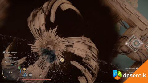 Po przejściu Pochodzenia Myśli trafiasz do zupełnie innej scenerii. Gra przenosi cię do pustynnego obszaru, gdzie od razu rzuca się w oczy ogromne, wirujące tornado. Na pierwszy rzut oka wygląda to jak sytuacja bez wyjścia – wszystko wokół jest częściowo nieaktywne, a droga dalej wydaje się zablokowana.