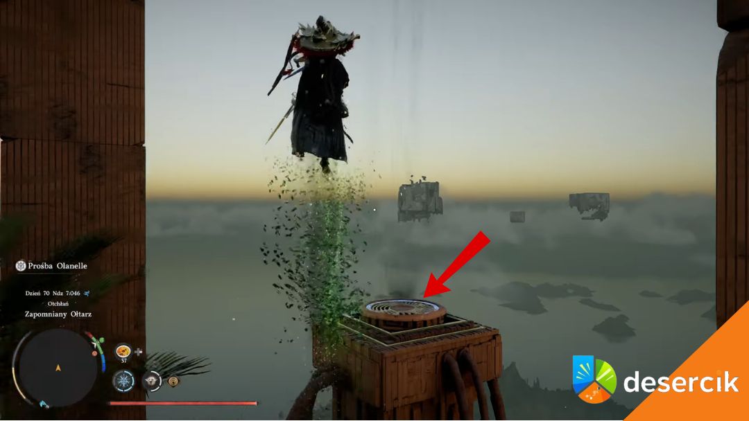 Wchodzisz w jej zasięg i korzystasz z podmuchu powietrza, żeby wznieść się wyżej. W połączeniu z szybowaniem pozwala to dotrzeć na górną platformę, gdzie znajduje się tornado.