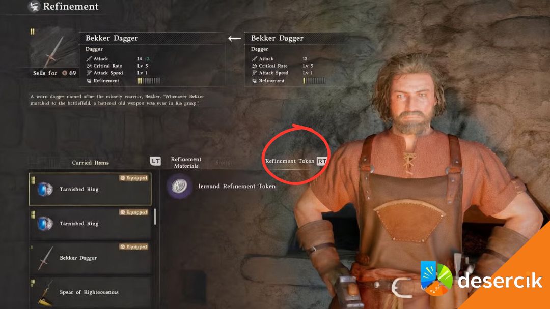 Żeton działa prosto, ale skutecznie. Możesz go użyć w kuźni w mieście Hernand – dokładniej w sekcji Udoskonalenia. Tam wybierasz broń lub element zbroi, który chcesz ulepszyć, i masz trzy opcje: