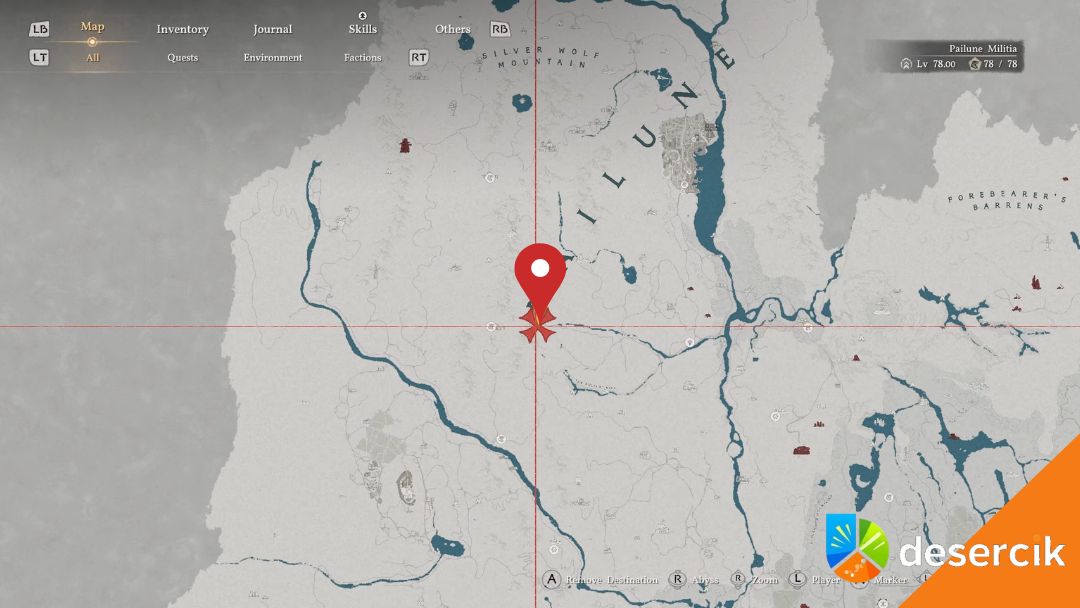 Jego prawdziwa funkcja jest prosta – pozwala natychmiast oswoić kota. Bez czekania, bez powtarzania interakcji, bez biegania za nim przez kilka dni. Złoty Karp nie jest losowy. Ma swoje stałe miejsce i jeśli wiesz gdzie iść, znajdziesz go bez problemu. Trzeba udać się na północ od Hernand, w okolice Pailune. Tam znajdziesz niewielki staw, dokładnie tuż pod literą „P” na mapie.