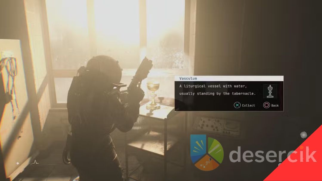 Zabierz oba naczynia z powrotem do kaplicy i umieść je na ołtarzu, aby zdobyć Klucz do zaplecza kaplicy. Użyj klucza, aby otworzyć drzwi obok kaplicy – w środku znajdziesz mnóstwo zasobów oraz broń Mace JER-5120, czyli strzelbę dwulufową, której łatwo przegapić, jeśli skupisz się tylko na głównym wątku fabularnym.