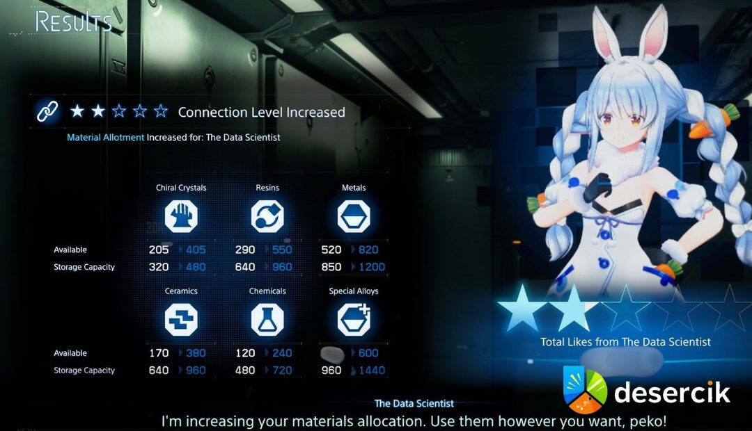 Kiedy dotrzecie do bunkra, dostarczcie pizzę, a Pekora powita was swoim kultowym „peko peko” i podziękuje za dostawę. Potem poprosi o podłączenie jej bazy do chiralnej sieci, co odblokuje możliwość dokowania Magellana w okolicy i składowania przedmiotów. To jak odblokowanie nowego checkpointu w grze – daje wam bazę wypadową na wschodzie.
