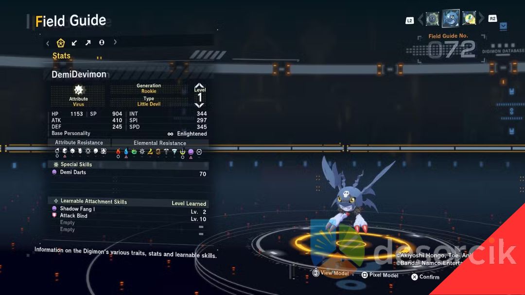Jeśli nie wybierzesz DemiDevimona na start, możesz go zdobyć później, ewoluując Kuramon → Pagumon → DemiDevimon.