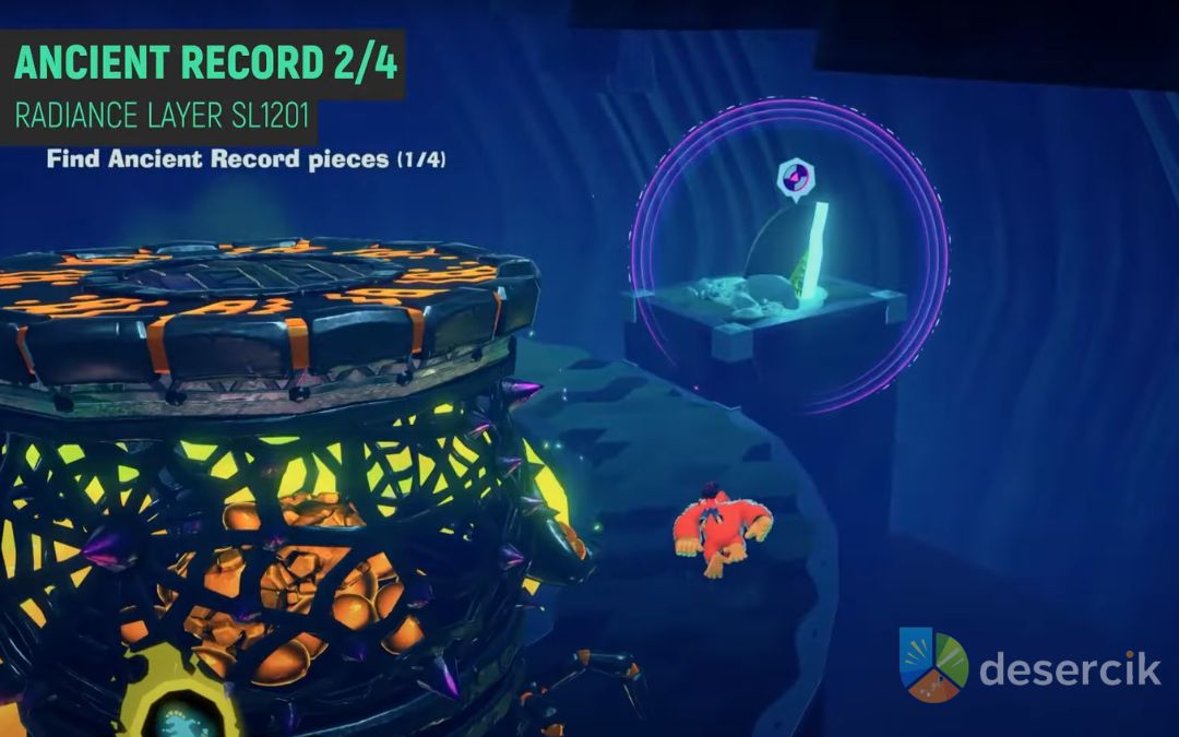 Żeby zdobyć drugą część Radiance Ancient Record, musicie przeskoczyć nad ramionami wroga, gdy te wysuwają się z jego korpusu. Timing jest kluczowy – jeden zły skok i lądujecie w lawie, co boli bardziej niż przegrana w Super Smash Bros.. Część rekordu leży na platformie z tyłu pokoju, więc chwyćcie ją i wracajcie na początek, znowu unikając wirujących ramion. Wrzućcie kawałek na gramofon Snake Elder, a wasza kolekcja będzie już w połowie gotowa. Pro tip: Używajcie podwójnego skoku DK, żeby mieć więcej kontroli w powietrzu – to jak dobrze wymierzony wall-jump w Celeste.