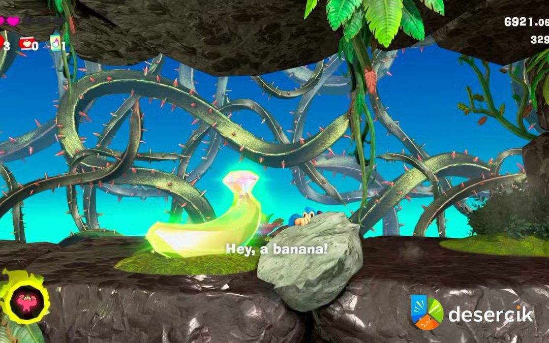 Bramble Country oferuje trzy Banandium Gems, z czego dwa są łatwe do zdobycia, a jeden wymaga wspomnianego triku z beczkami. Oto szczegóły: