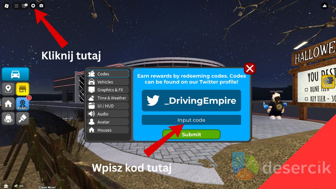 Aktywacja kodów w Driving Empire jest banalnie prosta. Wystarczy wykonać następujące kroki: