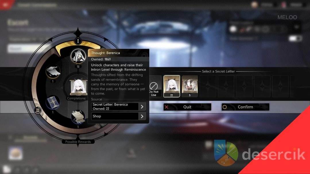 Po ukończeniu misji Sekretna Lista pokaże trzy możliwe nagrody, z których możesz wybrać tylko jedną. Szansa na zdobycie kluczowych materiałów do ulepszeń, jak Thoughts, jest niewielka.