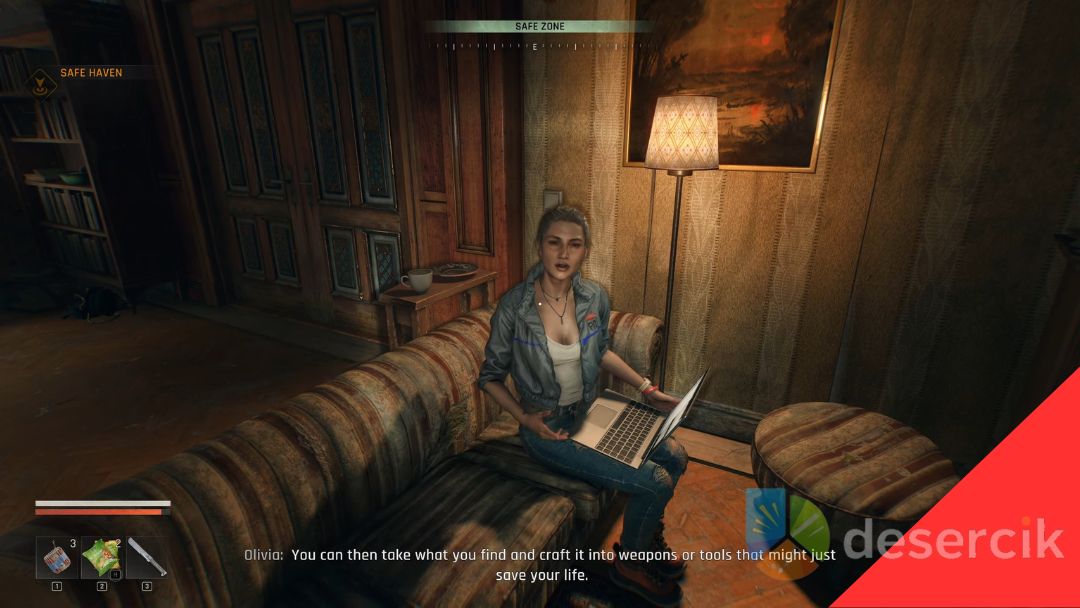 „Bezpieczna przystań” to druga misja w dodatku Dying Light: The Beast, która zaczyna się zaraz po zakończeniu „Pobudka Panie Crane”. Po dramatycznej ucieczce z laboratorium Olivia kontaktuje się z tobą przez radio i kieruje cię do klasztoru u podnóża ścieżki, niedaleko miejsca, w którym wydostałeś się na powierzchnię. To właśnie tam czeka na ciebie i ma wytłumaczyć, co właściwie się dzieje.