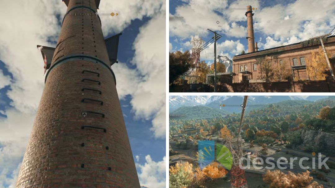 Kiedy w końcu uda ci się dotrzeć na szczyt komina, czeka na ciebie nagroda – linia zjazdowa prowadząca prosto do słupa wysokiego napięcia. Teraz wystarczy tylko wskoczyć i przejechać na drugą stronę, a już po chwili znajdziesz się w samym sercu strefy.