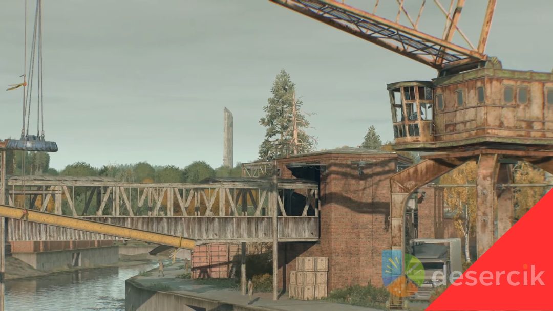 Po wyjściu z wody zobaczysz trzy dźwigi oznaczone na mapie. Tylko jeden z nich działa. Szukaj tego z magnetycznym hakiem przy białej ciężarówce – to właściwy dźwig. Wejdź na górę i spróbuj go uruchomić, ale szybko okaże się, że brakuje zasilania. Na dachu magazynu znajdziesz panel elektryczny, który da ci kolejny cel – czas zasilić dźwig.