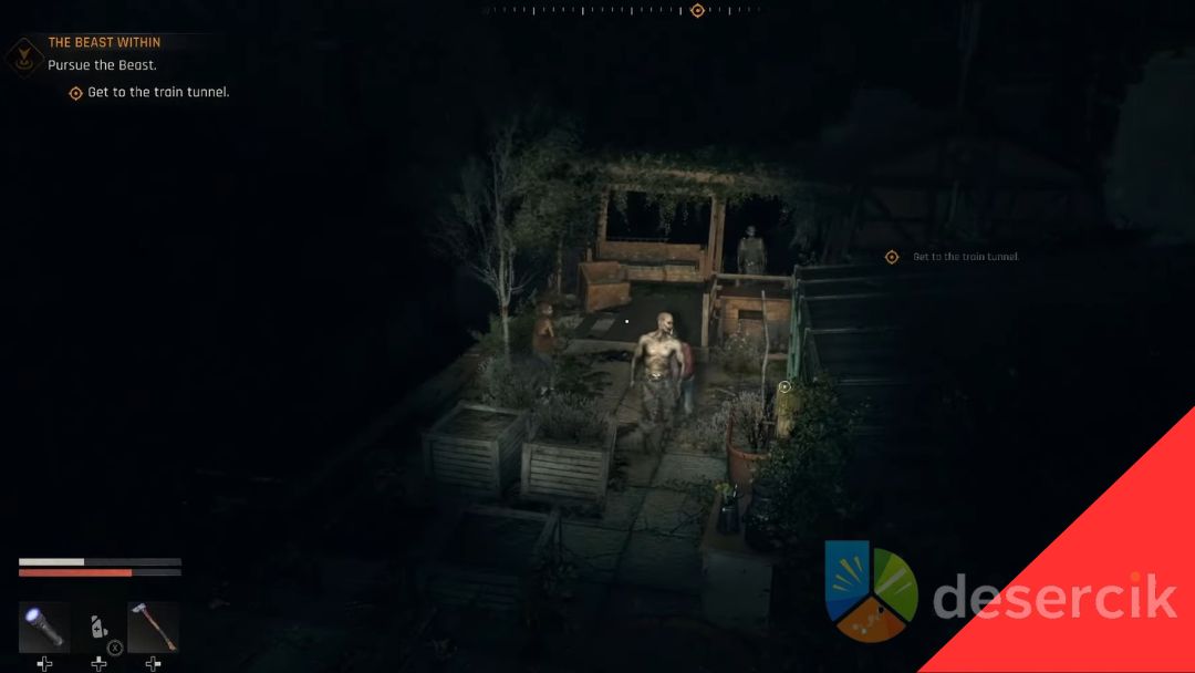 Po drodze spotkasz grupy zakażonych – oczyść trasę, żeby nie zostać otoczonym. Na dole schodów, w miejscu wyglądającym na ślepy zaułek, pojawi się duży zmutowany przeciwnik. Użyj znalezionej broni Pitchfork, by zadać mu duże obrażenia, a potem dokończ walkę swoim sprzętem.