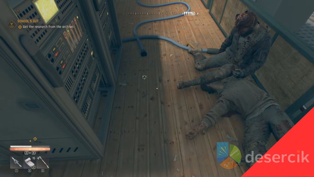 Wejdź przez okno na 2. piętrze, a następnie przeskocz w dół do Dark Zone. Przejdź przez bibliotekę i mały pokój, przedostając się do biura. Idź wzdłuż korytarza do klasy po prawej.