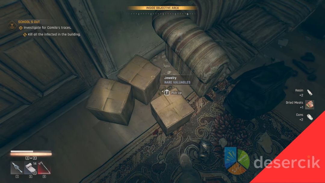 Camilo jest w zamkniętym pomieszczeniu – drzwi otworzą się dopiero po wyeliminowaniu wszystkich zainfekowanych. Przeszukaj wszystkie pokoje na dwóch piętrach. Po wyczyszczeniu terenu Camilo może zostać uwolniony, a Lydia osobiście odbierze go i wręczy nagrody za ukończenie misji Ostatni dzwonek.