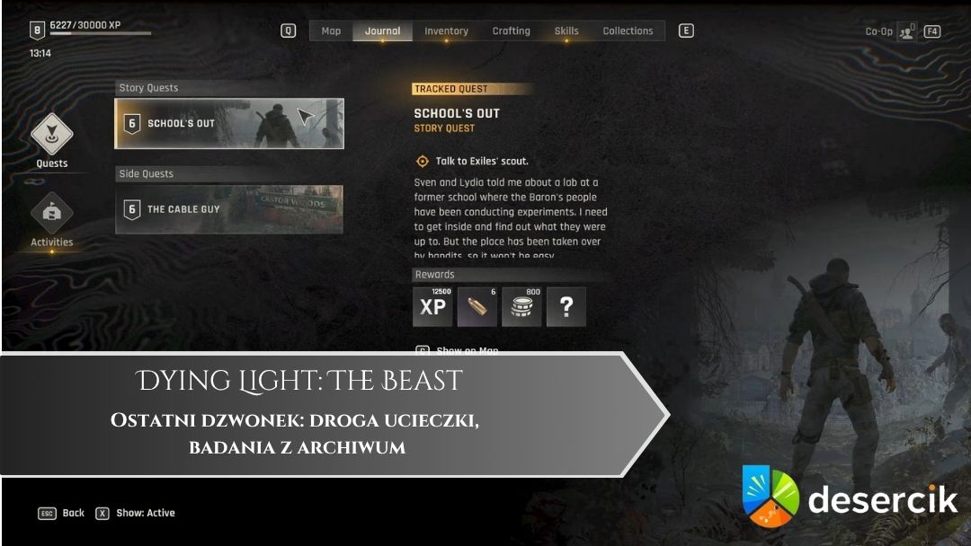 Ostatni dzwonek to misja, w której Lydia prosi Cię o pomoc w sprawdzeniu, co Baron i jego ludzie kombinują w lokalnej szkole. Jej kontakt, Ray, już jest na miejscu i monitoruje sytuację.