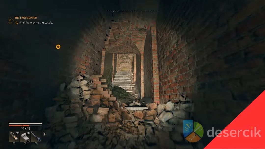 Zacznij od zejścia do klifu przy wodzie, a potem skręć w prawo. Szukaj łuku z cegieł w ścianie skalnej – to wejście do tunelu prowadzącego w stronę zamku. W środku natrafisz na zamurowane przejście. Załóż ładunek wybuchowy, odsuń się i po eksplozji przejdź dalej.
