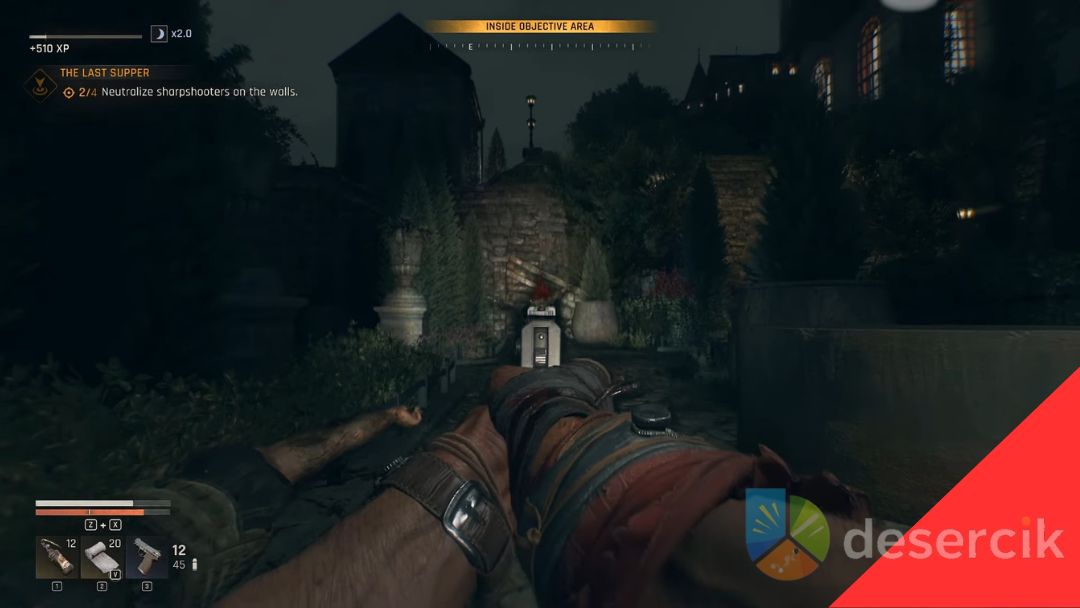 Na murach patroluje czterech strzelców wyborowych, których trzeba zneutralizować po cichu. Wyłącz latarkę, używaj Survivor Sense, by śledzić ruchy przeciwników i atakować, gdy nie patrzą. Nocą jest znacznie łatwiej – widoczność spada, a snajperzy mniej reagują.