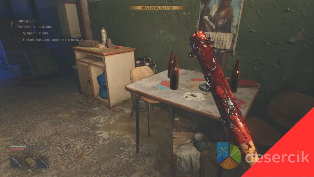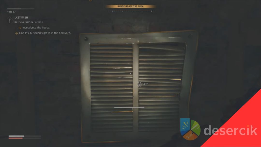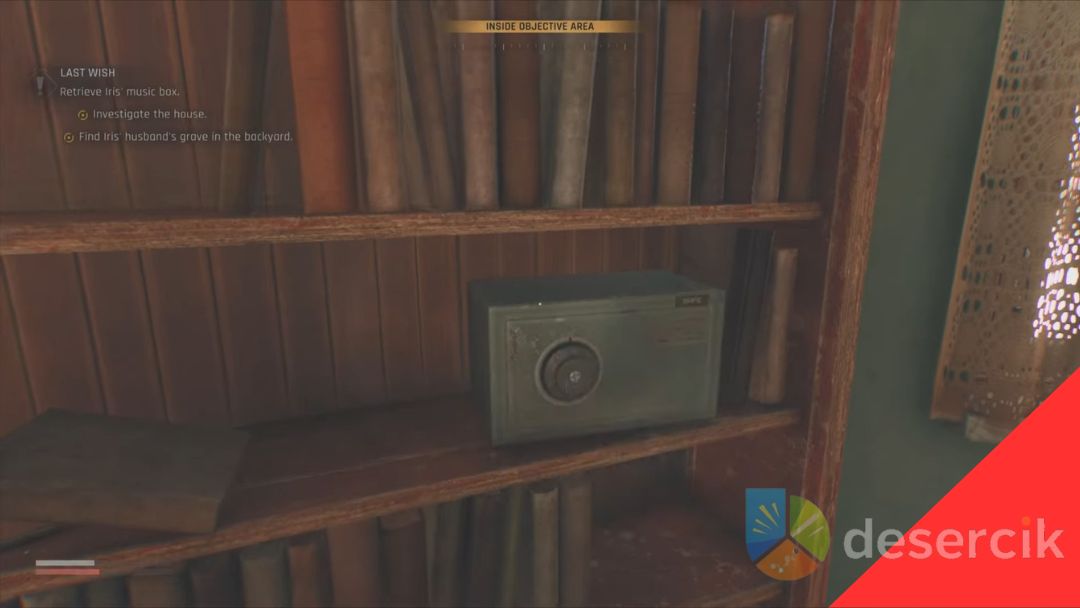 Po wejściu przez łazienkę trafisz do sypialni Iris, a obok niej znajduje się kuchnia. Na stole w salonie znajdziesz list do Iris, a w sypialni – sejf, który musisz zbadać, by ruszyć dalej.