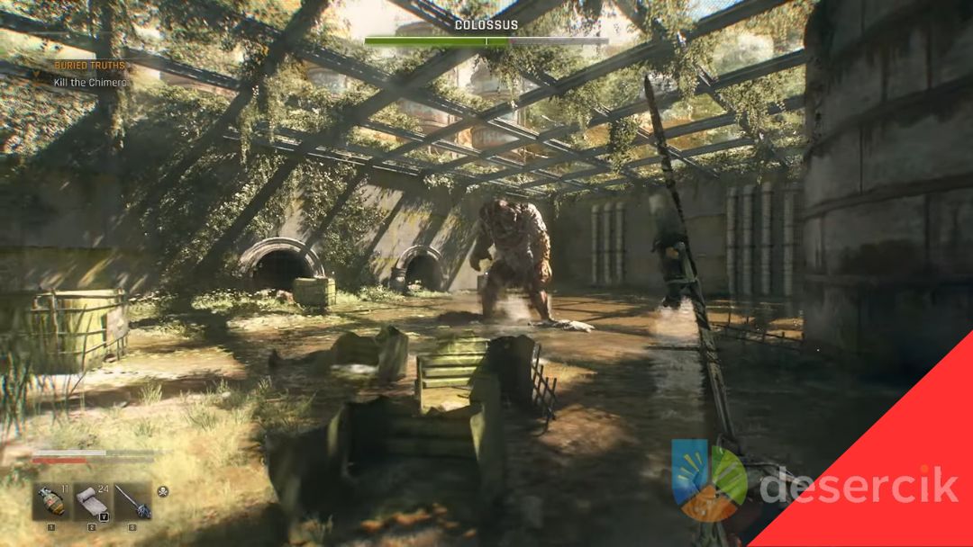 Colossus działa podobnie jak Behemoth – uderza w ziemię, próbując Was powalić. W trakcie walki pojawią się Biters, które dodatkowo utrudnią Wam zadanie. Uważajcie na pojemniki w pomieszczeniu, żeby nie zostać wciśniętym w narożnik podczas uniku.