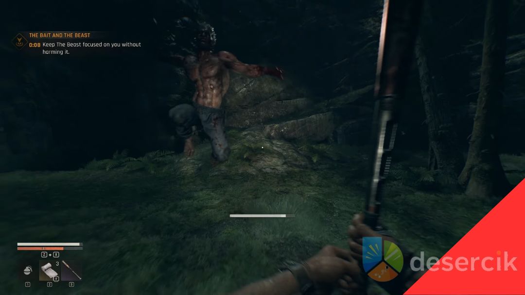 Gdy Bestia się pojawi, zaczyna się czteroetapowa walka, a twoim głównym zadaniem jest przetrwać i nie zabijać jej. Masz tylko stalowy kij i trzy legendarne bandaże – i muszą ci wystarczyć na całą potyczkę.