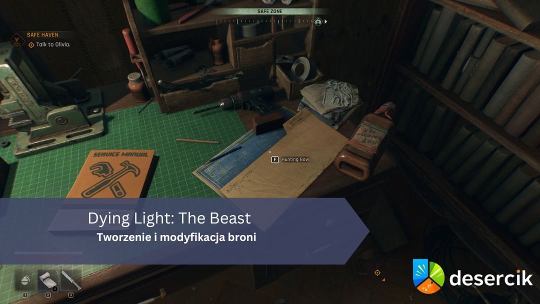 Gdy masz już wszystkie materiały, udaj się do warsztatu w bezpiecznej strefie (Safe Zone). Tam: