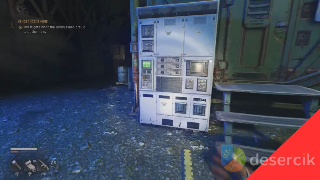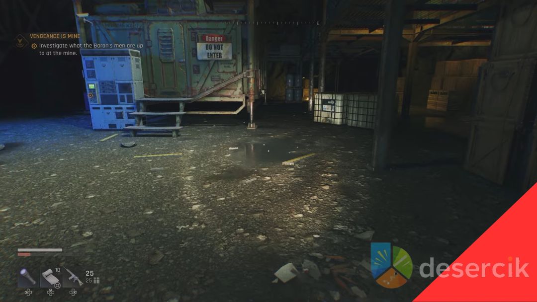 Kopalnia ma kilka punktów krycia, wysoka trawa pomaga uniknąć wzroku żołnierzy. Możesz podejść skradanie, atakować z dystansu lub wbić się w melee. Drzwi wejściowe wymagają średniego lockpicka, więc miej trochę czasu na otwarcie. Po wejściu misja się aktualizuje.