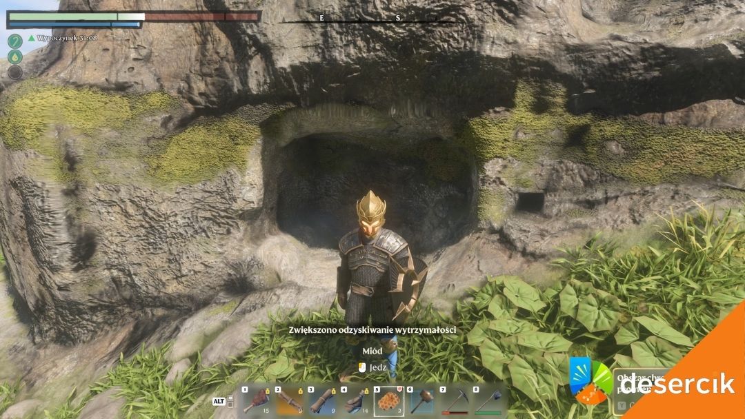 - Miód – nieco trudniejszy do zdobycia, ale bardzo skuteczny. Odnawia więcej wytrzymałości niż woda, więc jeśli planujesz długą wyprawę lub farmisz w Mgłę, trzymaj go przy sobie.