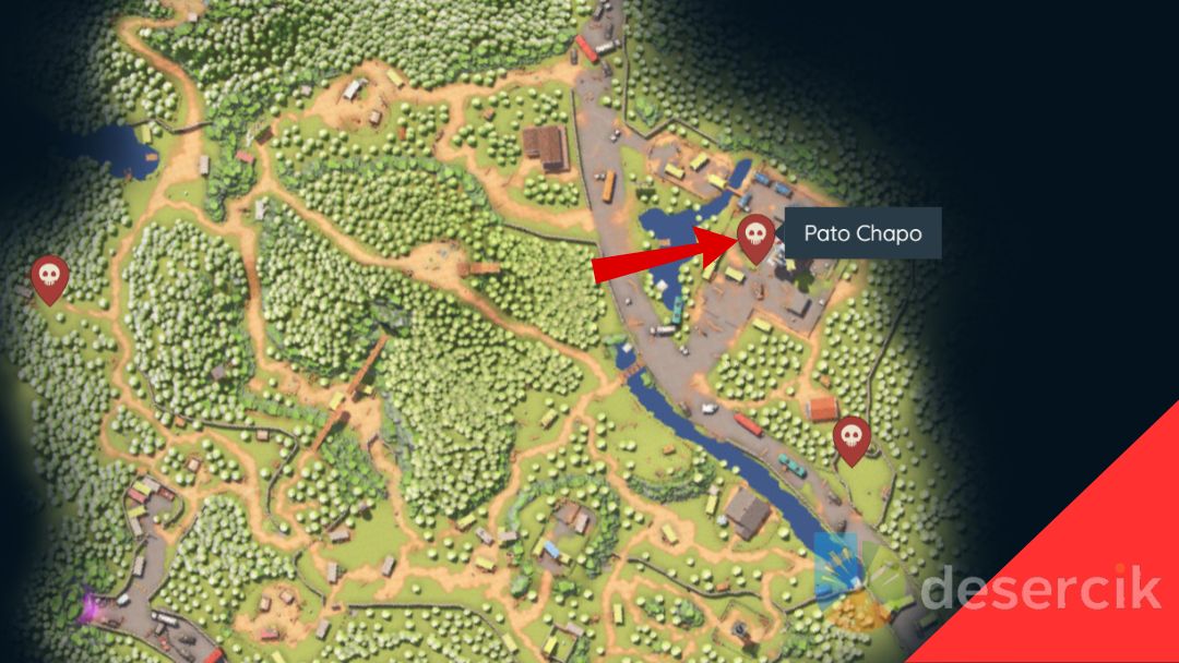 Pato Chapo patroluje obóz drogowy (Road Camp) w regionie Ground Zero. To dość rozległa miejscówka po wschodniej stronie mapy. Najczęściej spotkasz go w samym środku obozu, ale czasem przemieszcza się w okolice południowo-zachodniego wejścia, gdzie potrafi wdawać się w walki z innymi wrogami. Jeśli chcesz skrócić sobie czas poszukiwań – najlepiej podejdź z dystansu i obserwuj teren przez lunetę, zanim wejdziesz w sam środek chaosu.