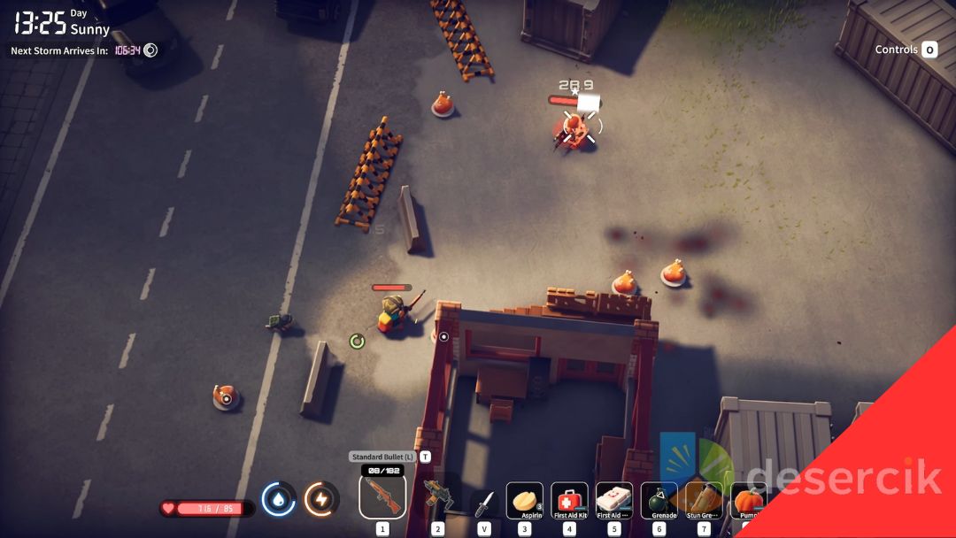 Nie musisz się ograniczać w broni. Prawie każda broń da radę, ale unikaj lunet – boss porusza się chaotycznie, więc celowanie ze scope’a mija się z celem. Wykorzystaj pobliskich wrogów. Możesz sprowokować innych przeciwników, żeby walczyli z bossikiem, co pozwoli Ci oszczędzić amunicję i zmniejszyć zużycie broni.