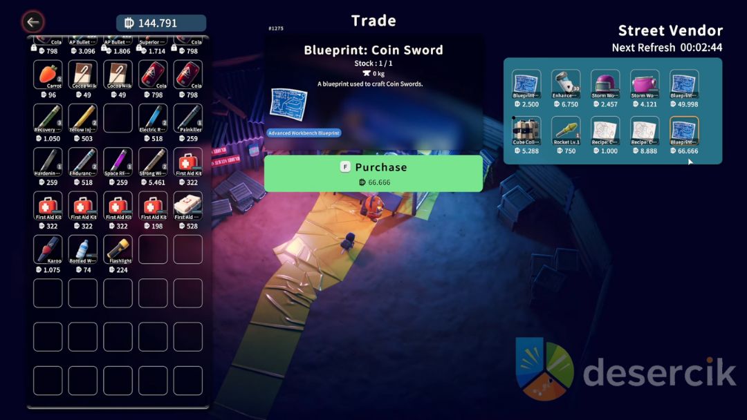 Na razie istnieje tylko jeden sposób, by go zdobyć – trzeba stworzyć go samodzielnie. Do tego niezbędny jest warsztat w twojej kryjówce oraz przepis (recipe) na Coin Sword. Recepturę kupisz u ulicznego handlarza (Street Vendor NPC).