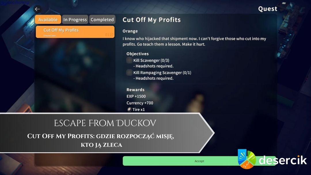 W zadaniu Cut Off My Profits w Escape From Duckov twoim celem jest wyeliminowanie kilku wrogów precyzyjnymi strzałami w głowę. Misję zleca Orange, a mimo że wygląda na prostą, potrafi zaskoczyć, jeśli nie jesteś przygotowany.