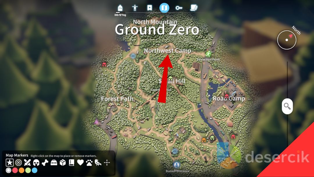 Drugim punktem ekstrakcji jest obszar Northwest Camp, który jest zaznaczony na mapie. Aby tam dotrzeć, trzeba przejść Mały Wzgórek i pokonać teren obozu. Uwaga: w obozie czekają trzej dobrze uzbrojeni wrogowie, więc warto mieć ze sobą odpowiedni ekwipunek ochronny albo próbować obejść obóz bokiem. Choć osobiście nie udało mi się nigdy skutecznie przemknąć niezauważonym, metoda ta jest możliwa przy dobrym planowaniu i wykorzystaniu przesłon.