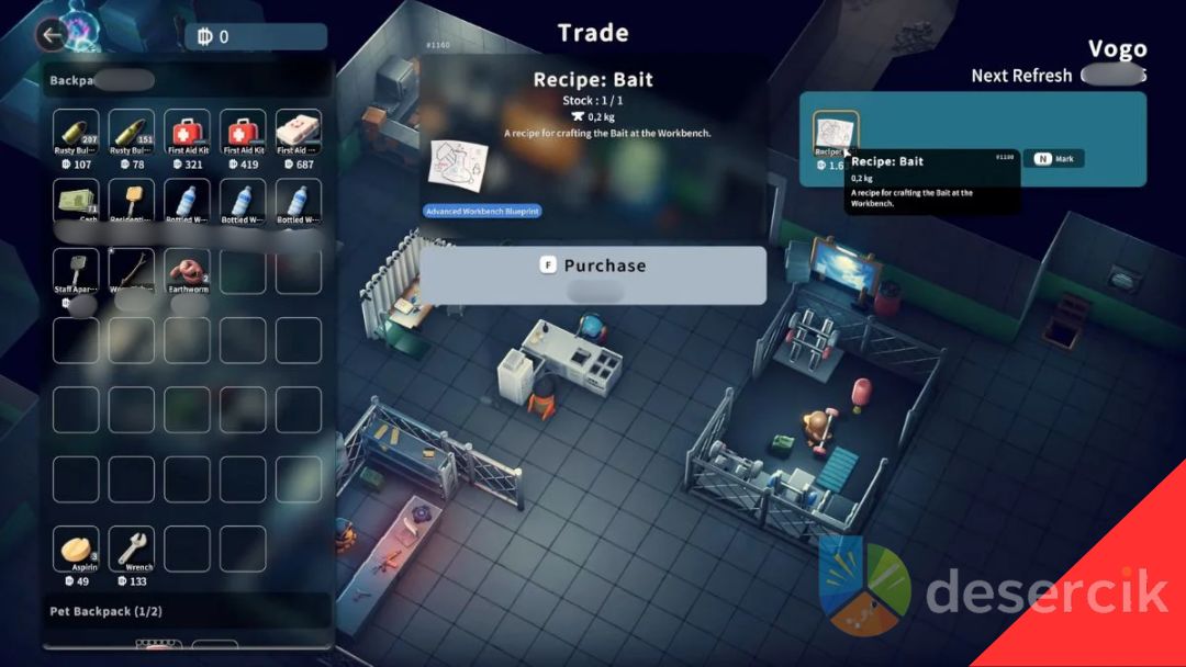 Bez przynęty nie ma ryb. Możesz zdobyć ją na dwa sposoby – poprzez eksplorację świata lub kupując przepis na przynętę od Vogo. Druga opcja jest jednak dość kosztowna, więc lepiej w początkowej fazie szukać przynęt samodzielnie.