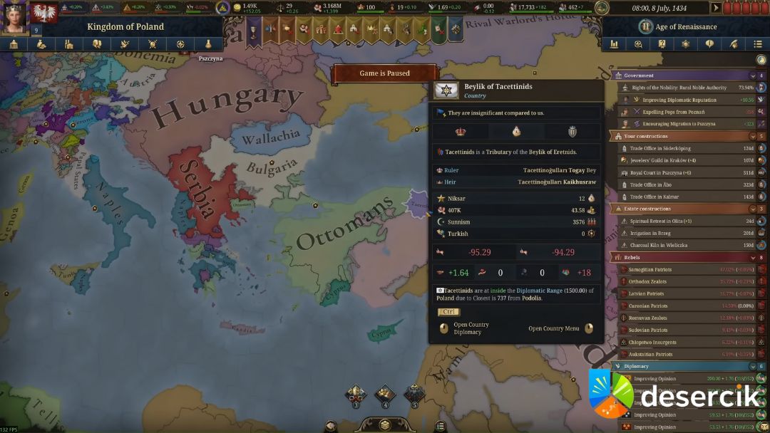 - Małżeństwa królewskie – zawarcie małżeństwa z szanowanym krajem może podnieść twój prestiż. Możliwe są także unie personalne, gdzie kilka krajów dzieli wspólnego władcę, co daje ciekawe możliwości zarządzania.