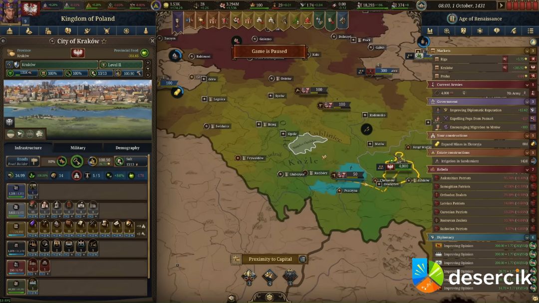- Utrzymanie fortyfikacji – inwestowanie w forty nie tylko zwiększa obronność kraju, ale też podnosi jego reputację militarną, bo przeciwnicy zapamiętają siłę twojej armii.